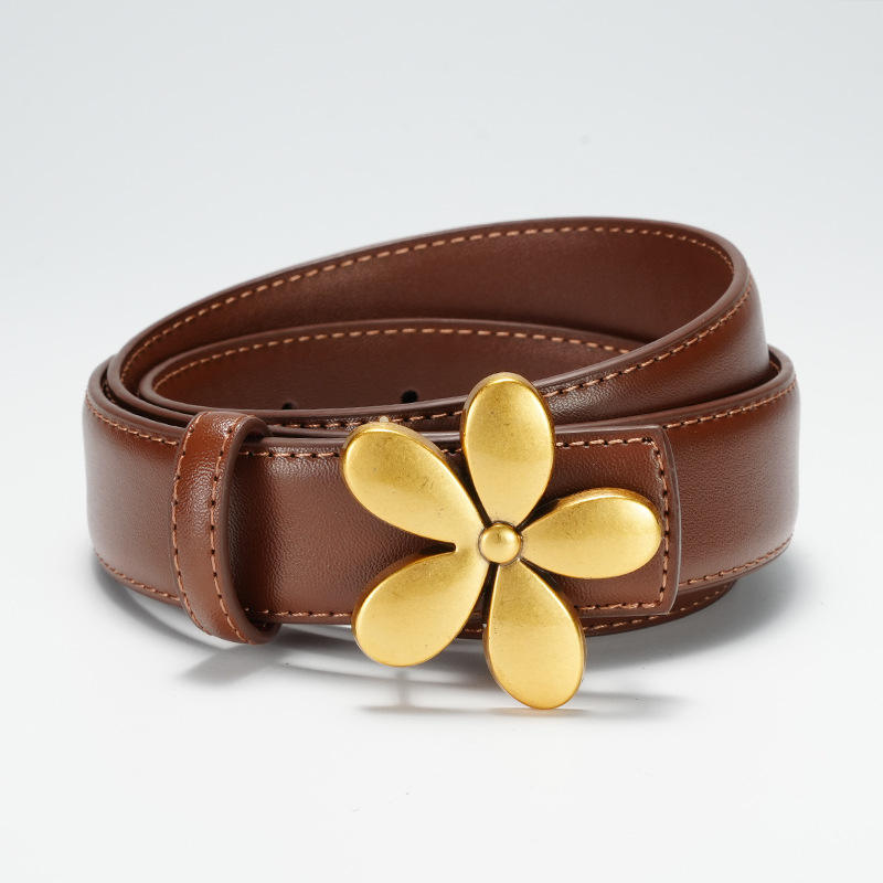 Versatile Women's Cowhide Genuine Leather Belt with Vintage Western Style Flower Alloy Buckle 2.8CM Width for Jeans Pakistan
