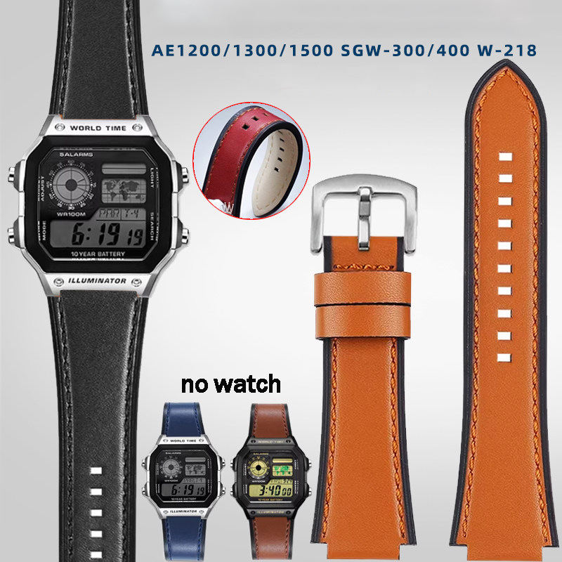 Upro 18mm Genuine Leather Band for casio AE1200/1300/1500 SGW-300/400 W-218 Watch Strap Belt Replacement