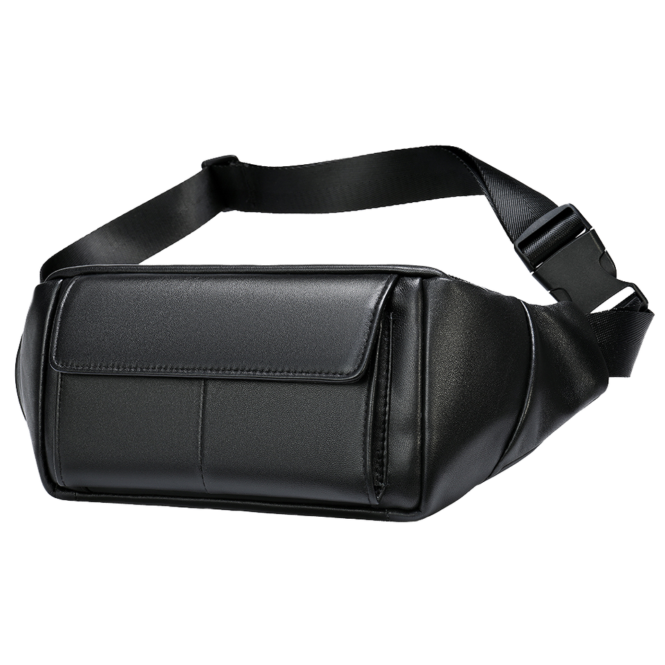 Genuine Leather Waterproof Chest Sling Bag for Men with Zipper Closure Outdoor Sports Waist Fanny Pack & Crossbody Phone Holder