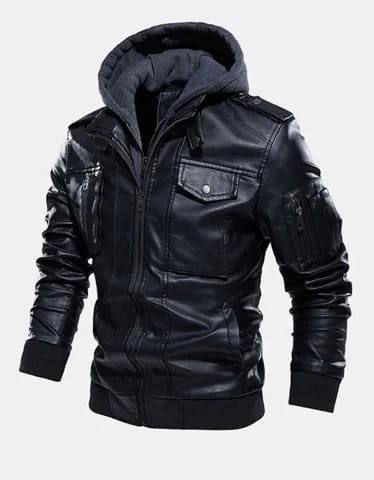 Genuine Leather Winter Jacket for Men Women with Faux Fur Hooded Windproof & Breathable Cotton Liner Durable Canvas Fabric