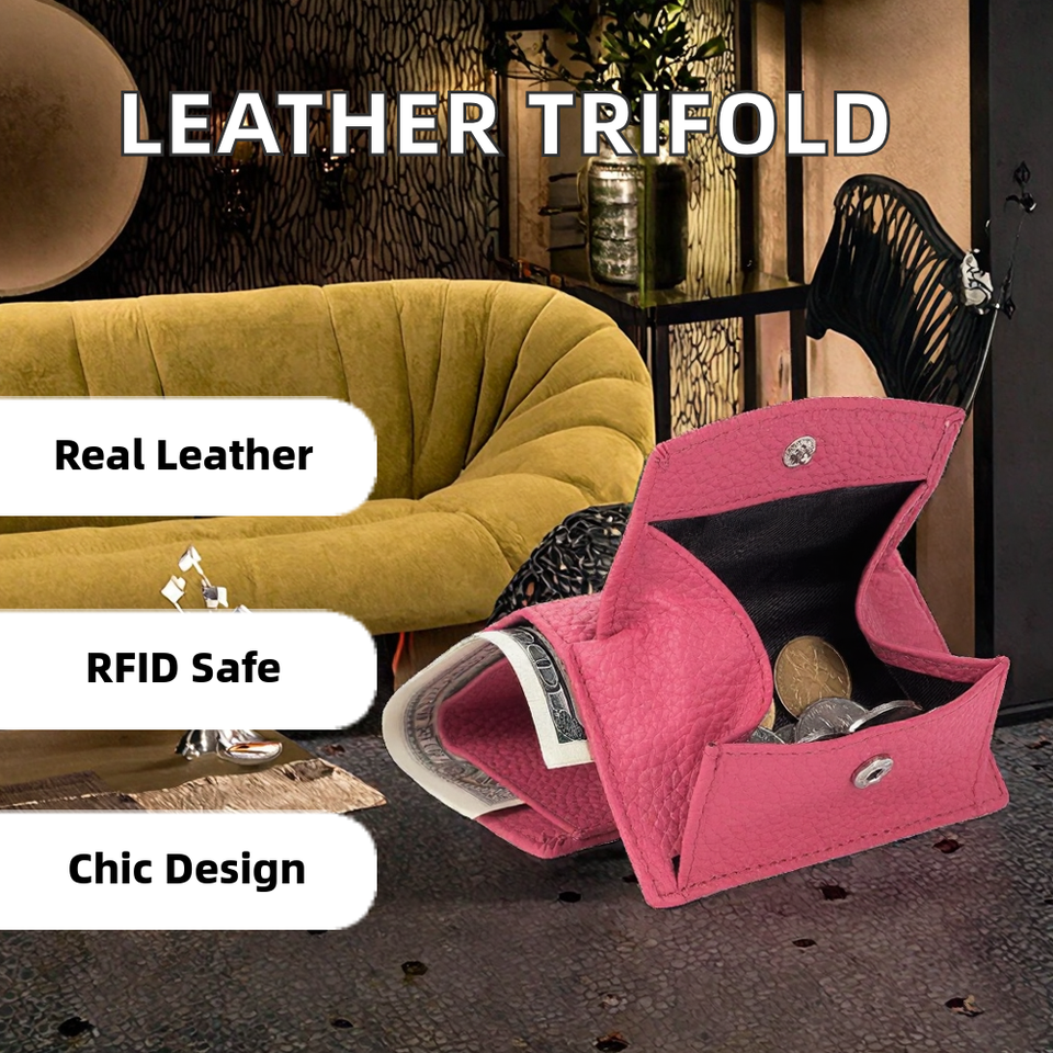 Genuine Leather Women's Fashion Trifold Wallet Short Zipper Coin Bag RFID Protection Ladies Card Holder Money Purse Litchi Open