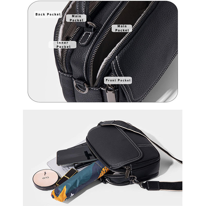 Genuine Leather Women's Single Shoulder Bag Small Round Handbag Fashion Messenger Bag Multi Functional Cosmetic Vanity Bag
