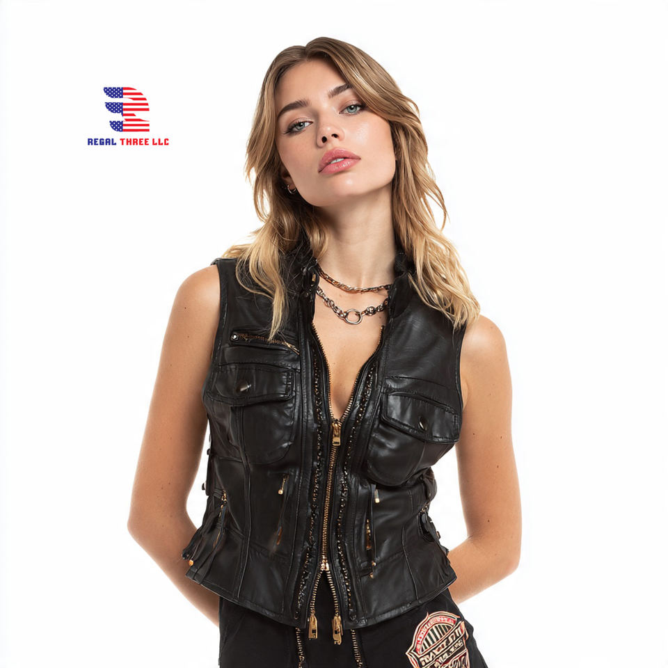 Product name:Women Leather Motor Biker Vest