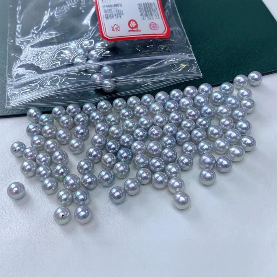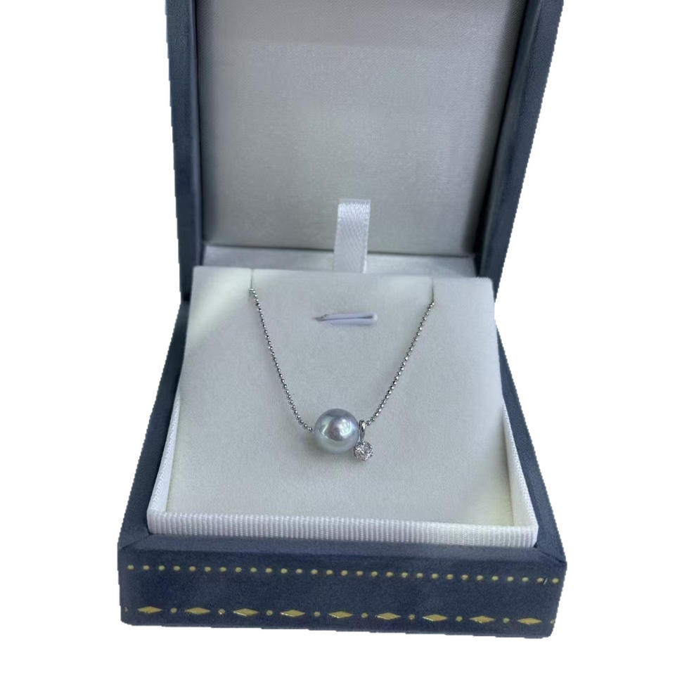 Genuine Linen Pearl Pendant 7-8mm Sea Water Gold Diamond Silver Necklace with Strong Aurora Mirror Light Dazzling Charms