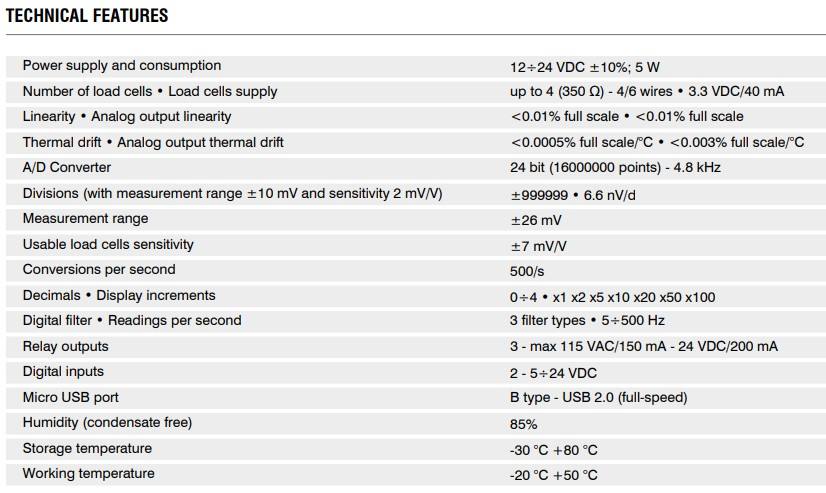 Number of load cells:up to 4 (350 OHM) /4-6 wires