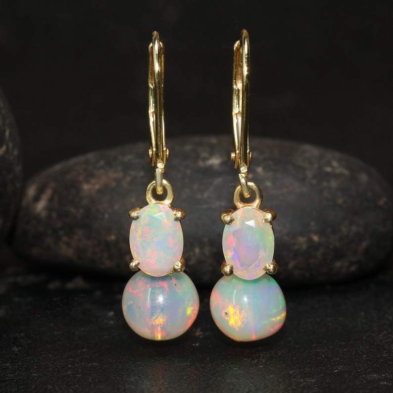 Genuine Opal Round And Oval Shape Gemstone Dangle Earrings Fire Opal Handmade Delicate Earrings 925 Sterling Silver