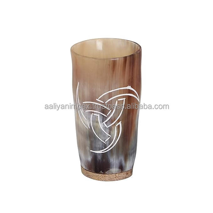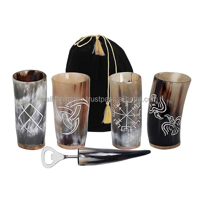Genuine Ox Horn Mug Shot Glass and Bottle Opener (3 Pc. Set) Authentic Ale Mead and Beer Vintage Stein with Handle Bar Party