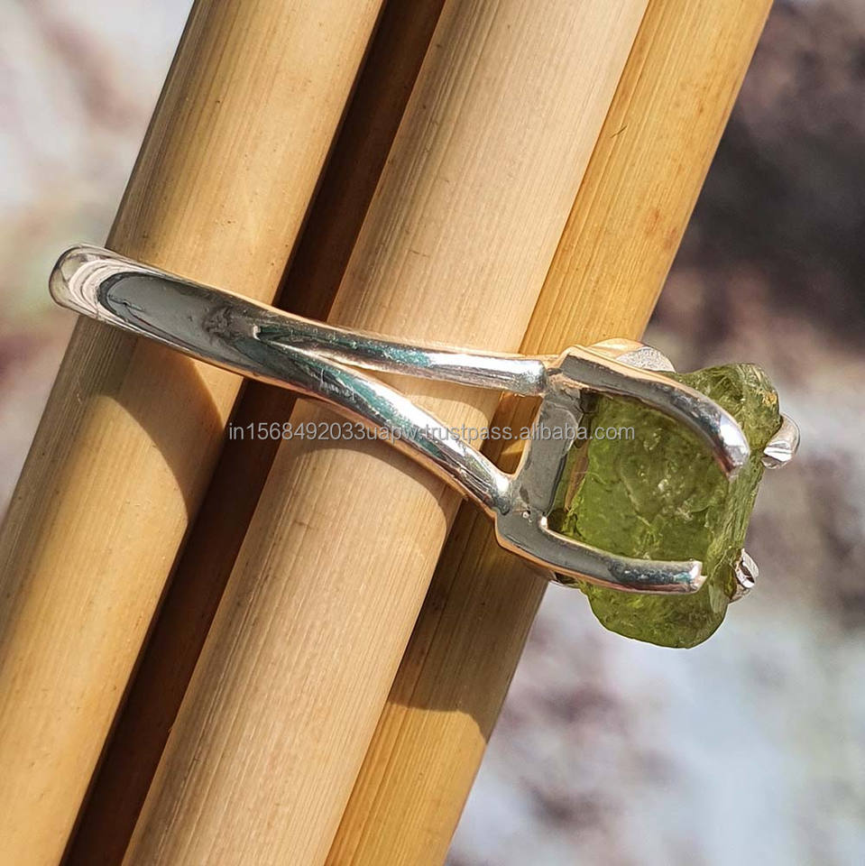 New Arrival Original Raw Peridot Gemstone Ring Sterling Silver 925 Jewellery from India Hot Popular Wholesale Jewelry in Bulk