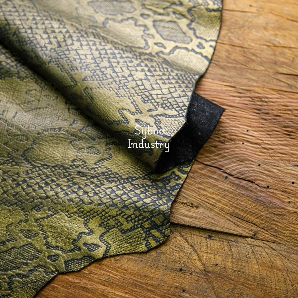 Genuine Python Skin Stylish Metallic Snakeskin Embossed Texture Top Grain Cow Skin Leather Material For Jacket