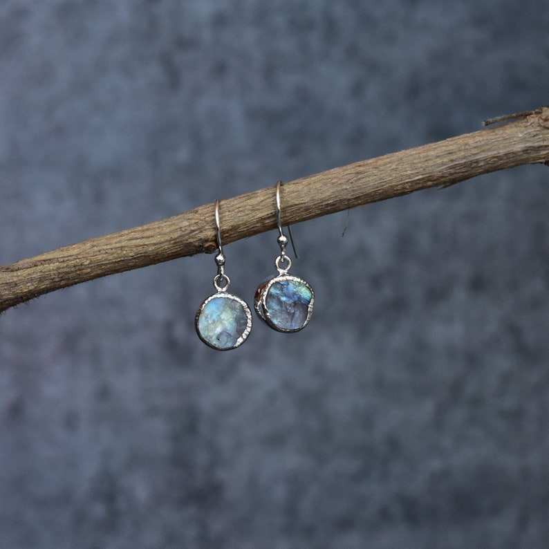 Genuine Raw Moonstone Dangle Earrings Handmade Sterling Silver Healing Crystal Small Gemstone Jewelry for Her for Weddings