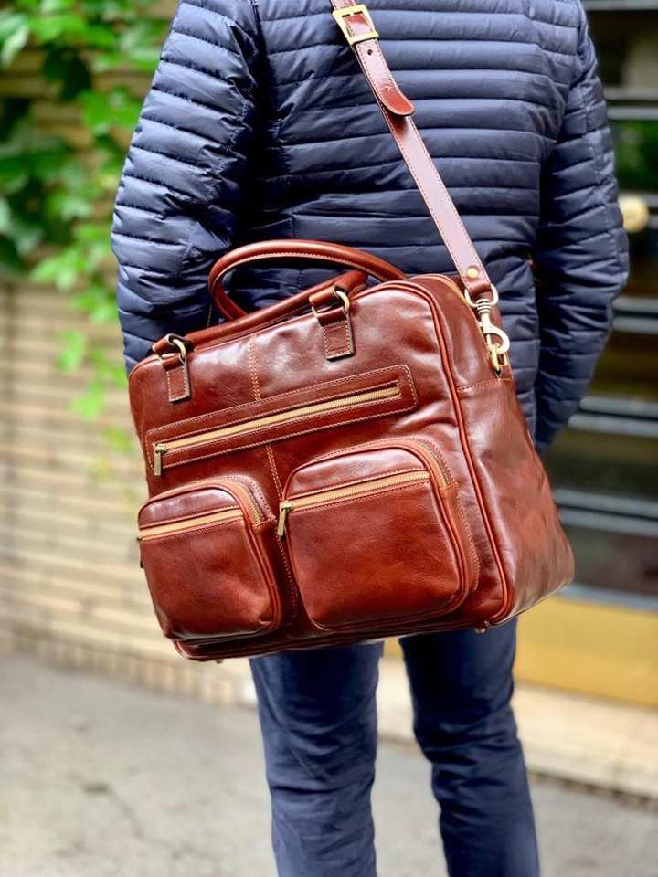 Genuine Real Leather LLP-0087 Men's Briefcase Laptop Bag Daily Use Business Handbag Messenger Bag