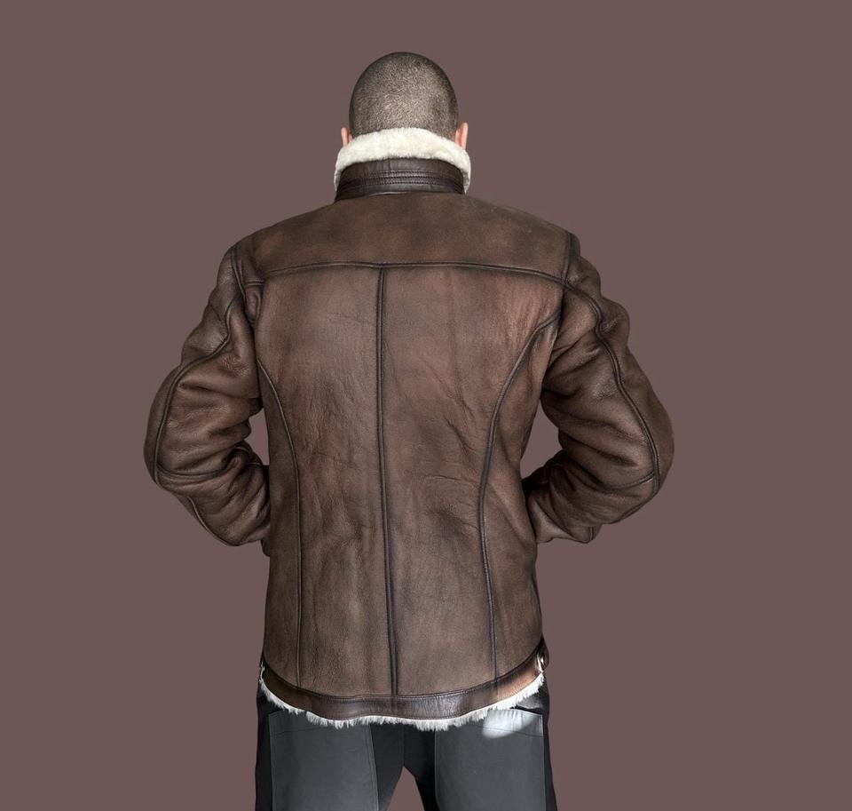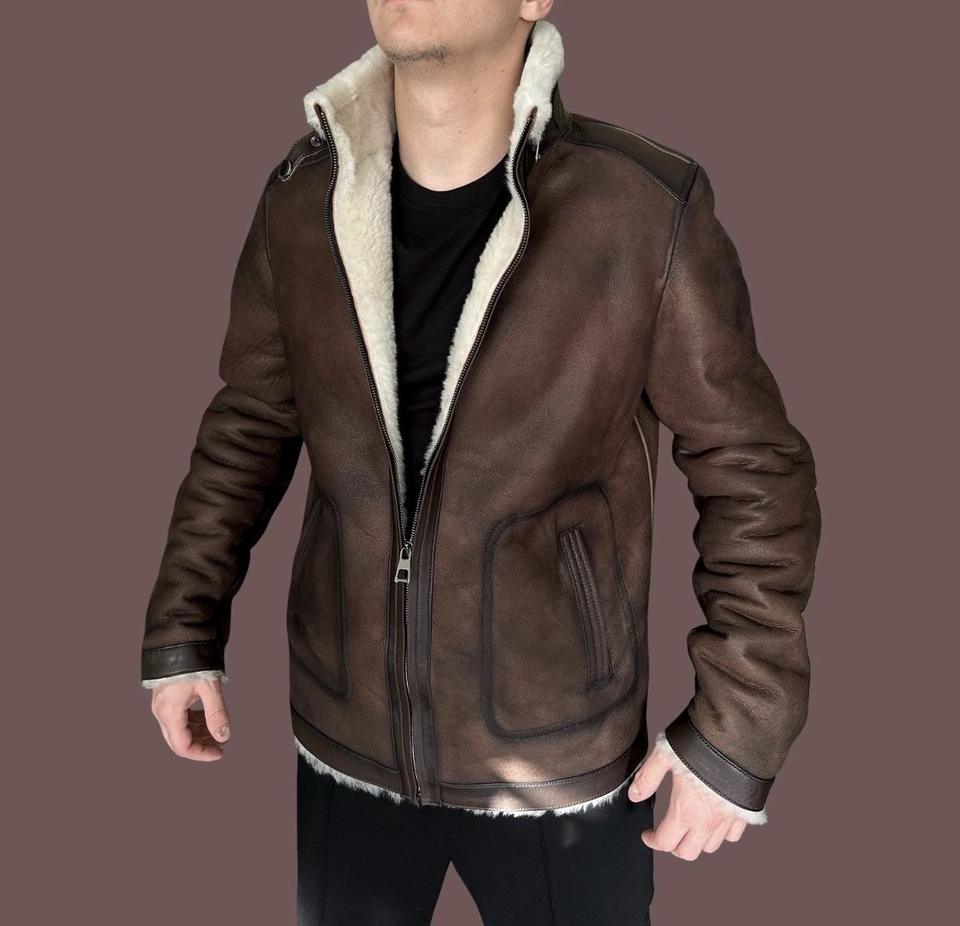 Genuine Sheepskin Bomber Jacket Men Classic Aviator Style Waterproof Breathable Windproof Warm Winter Leather Outerwear Vintage
