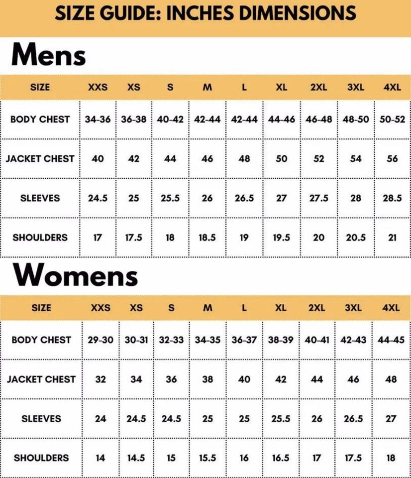 Front, back, Left Sleeve, Right Sleeve