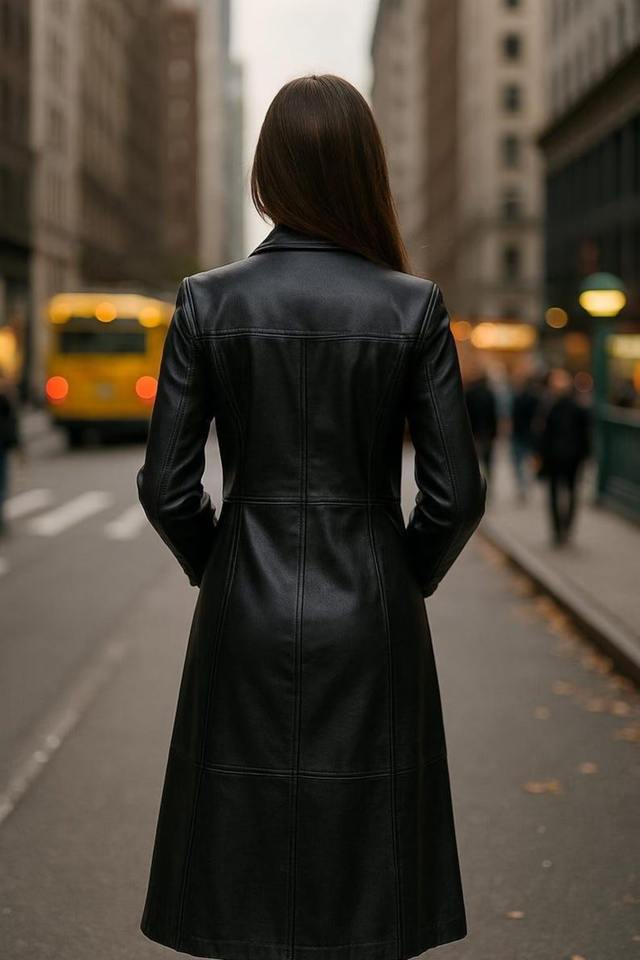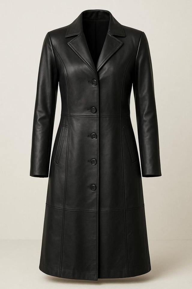 Genuine Sheepskin Leather Eco-Friendly High Quality Vintage Decoration Embossed Customizable Unisex X-Long Black Stand Coat