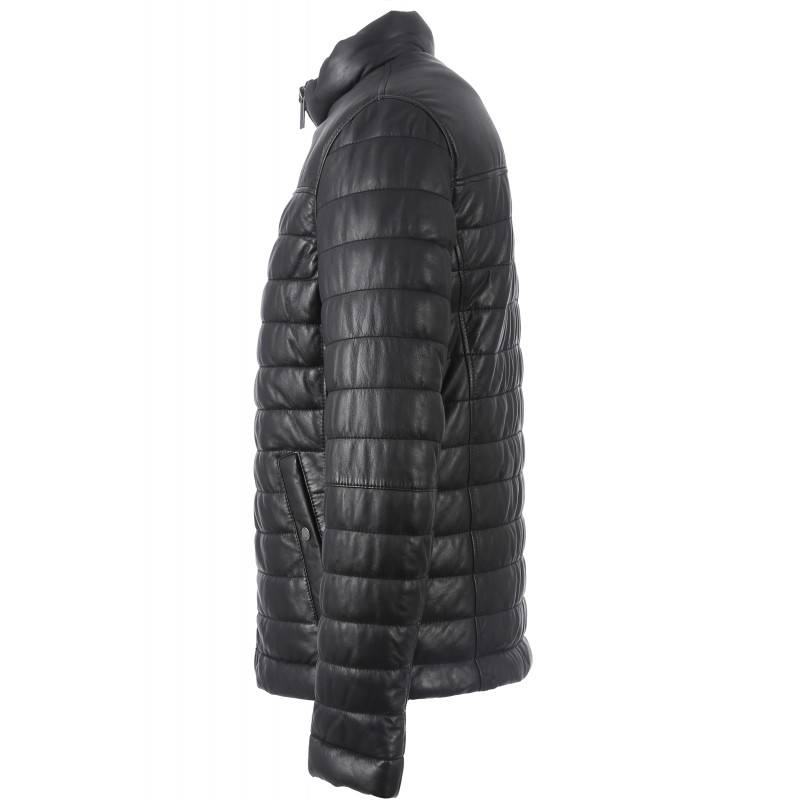 Genuine Sheepskin Nappa Leather Bubble Jacket for Men High Neck Down Black Color Customize Design for Winter Season