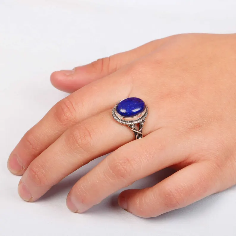 Genuine Solid 925 Sterling Silver Lapis Lazuli Ring Natural Gemstone Boho Dainty Jewelry Direct Factory Price