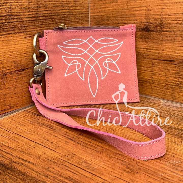 Genuine Suede Leather Coin Purse Boot Stich Wallet Purse Small New Arrival Fashionable Hot Sale Wristlet Unisex Coin Purse