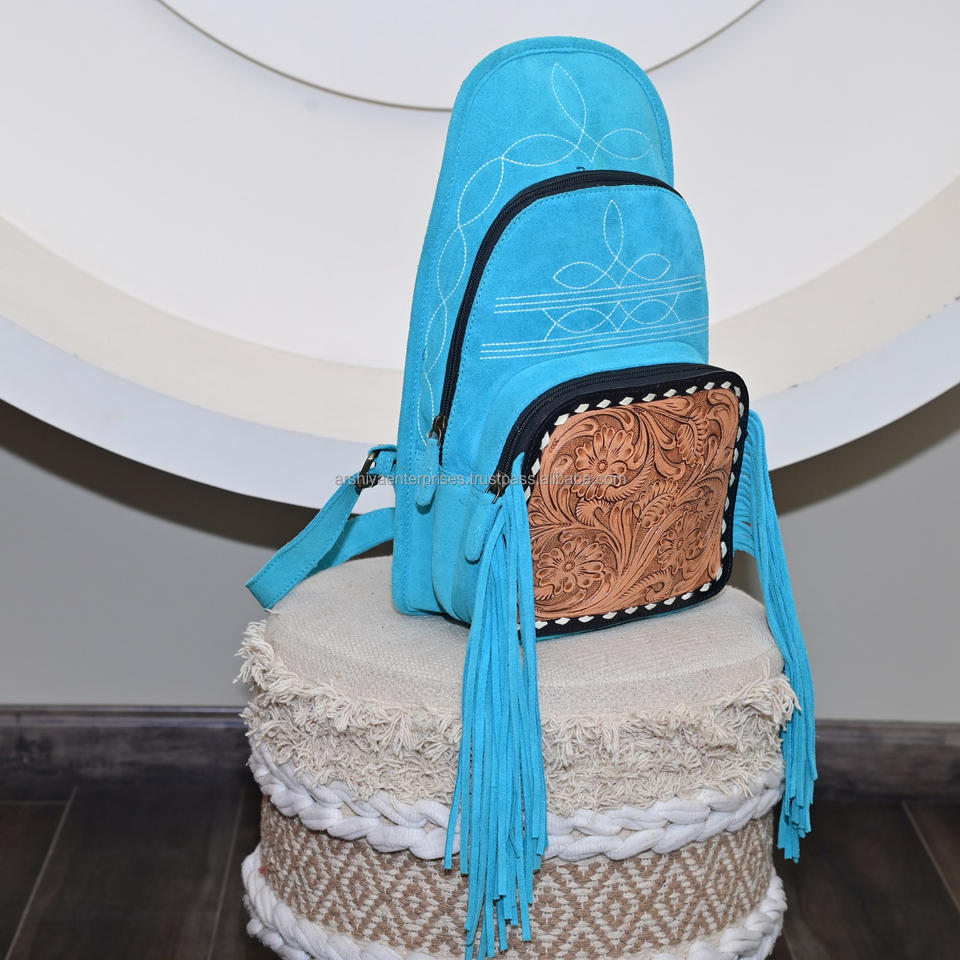 Product name:Hand Tooled Suede Leather Shoulder/Chest Bag