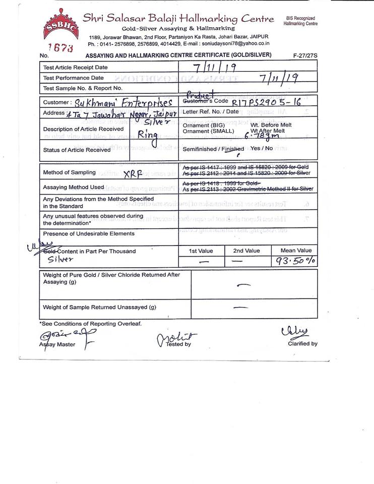 Metal:Solid 92.5 Sterling Silver