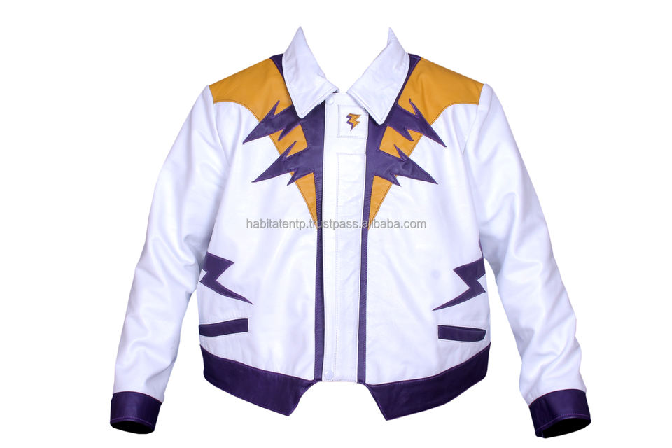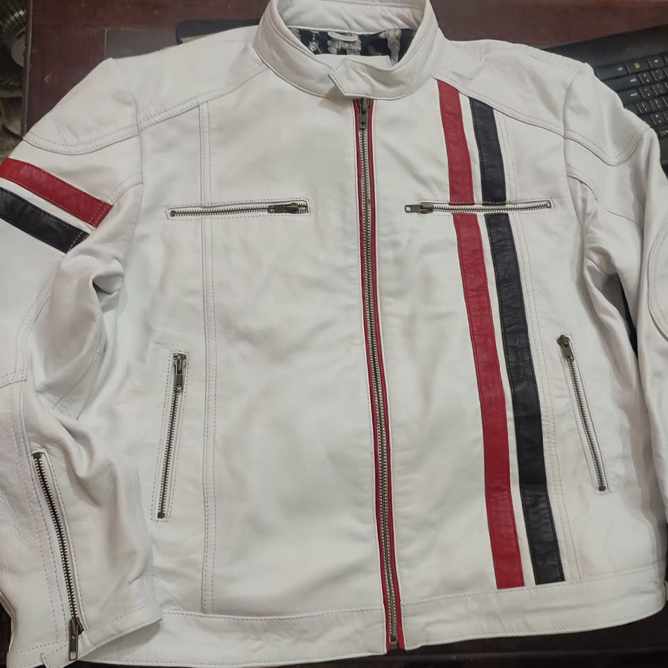 Genuine White Leather Cowhide Made Byte Jacket for Men with Custom Embroidered Back Designs Customize Logo Men Jackets