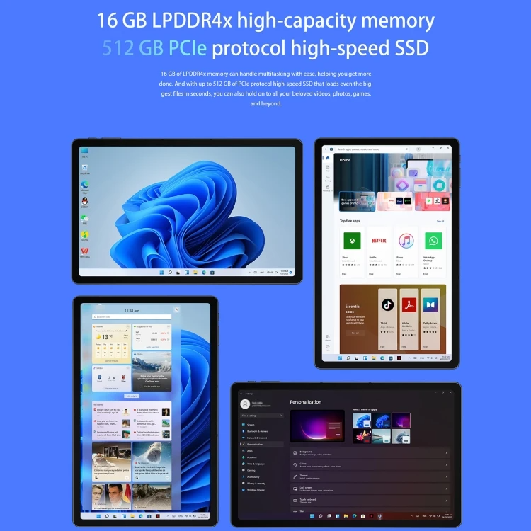 Genuine Win 11 Wifi 6 10.95 Inch 2K Screen I5 Processor 16GB 512GB SSD Wifi 6 Windows Tablet PC