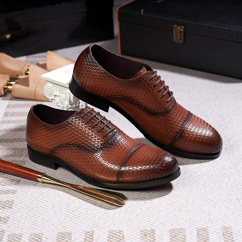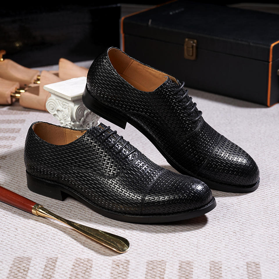 Genuine leather small square-toe breathable shoes with laces for closed fastening suitable for business men's wear
