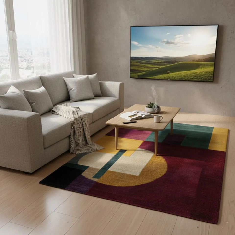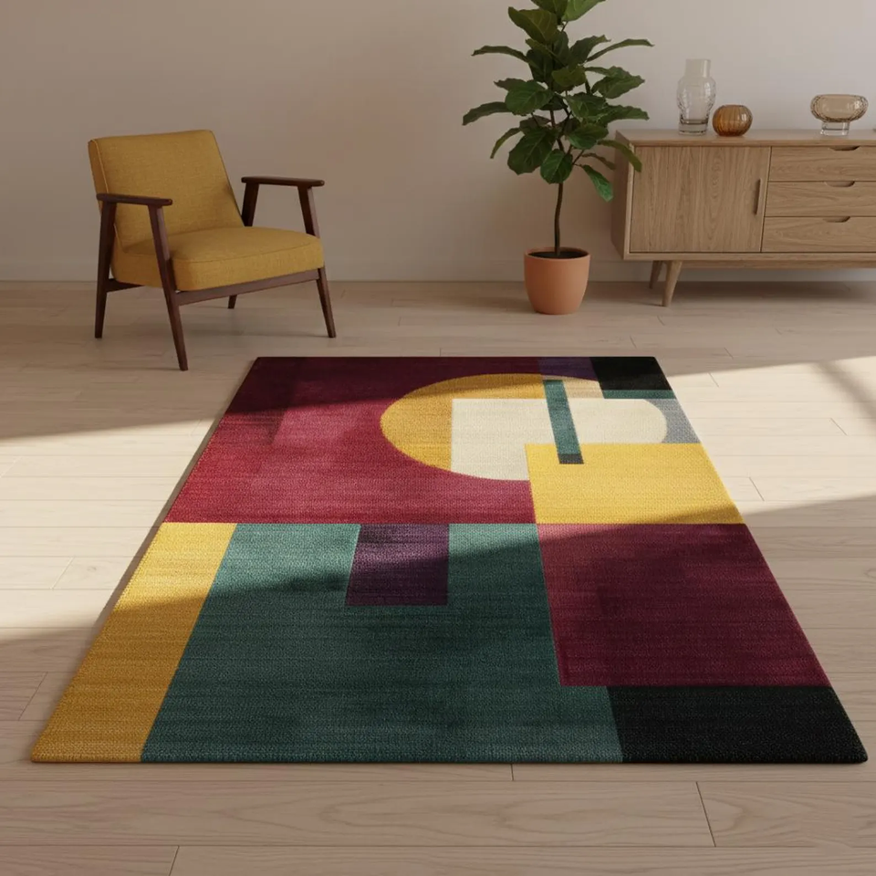 Geometric Abstract Area Rug | Mid-Century Modern Style Carpet for Living Room and Home Decor | Contemporary Floor Rug