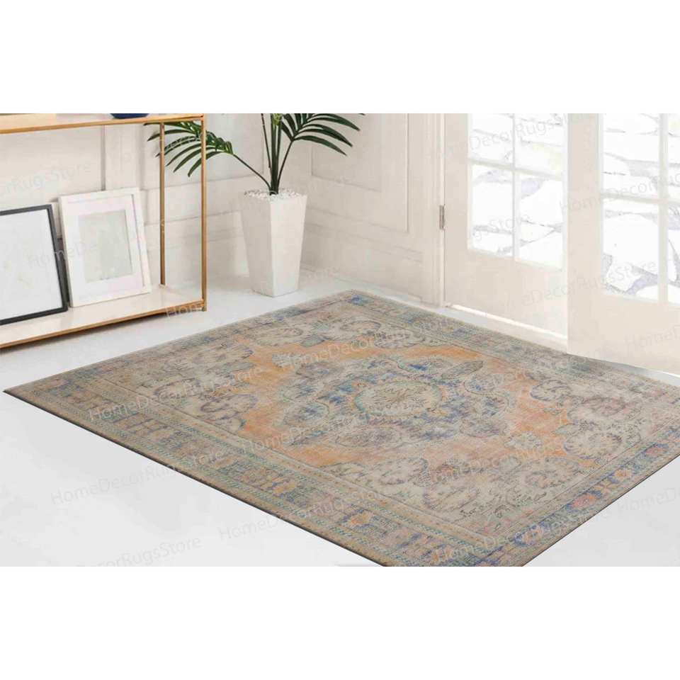 Geometric Anatolian Printed Rug: Turkish Oriental Design, Beige Wall Hanging Rug,Nonwoven Soft Rug
