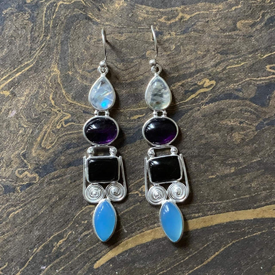 Geometric Animal Pattern Multi Stone 6.9 Grams Bezel Setting Drop Stud Trendy Religious Mainly Amethyst Opal for Parties
