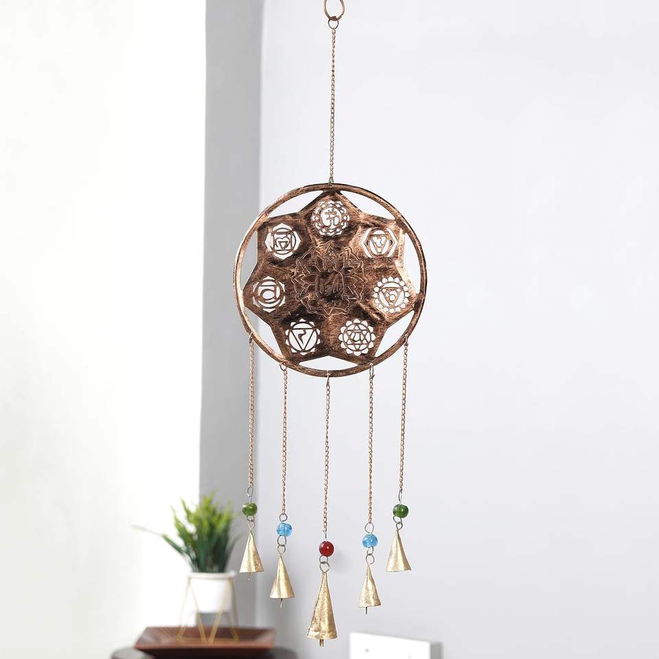 Geometric Buddha Wall Decor Wind Chimes With Multi Color Beads Metal Hanging Bells Wind Chimes for Outdoor Garden Decor