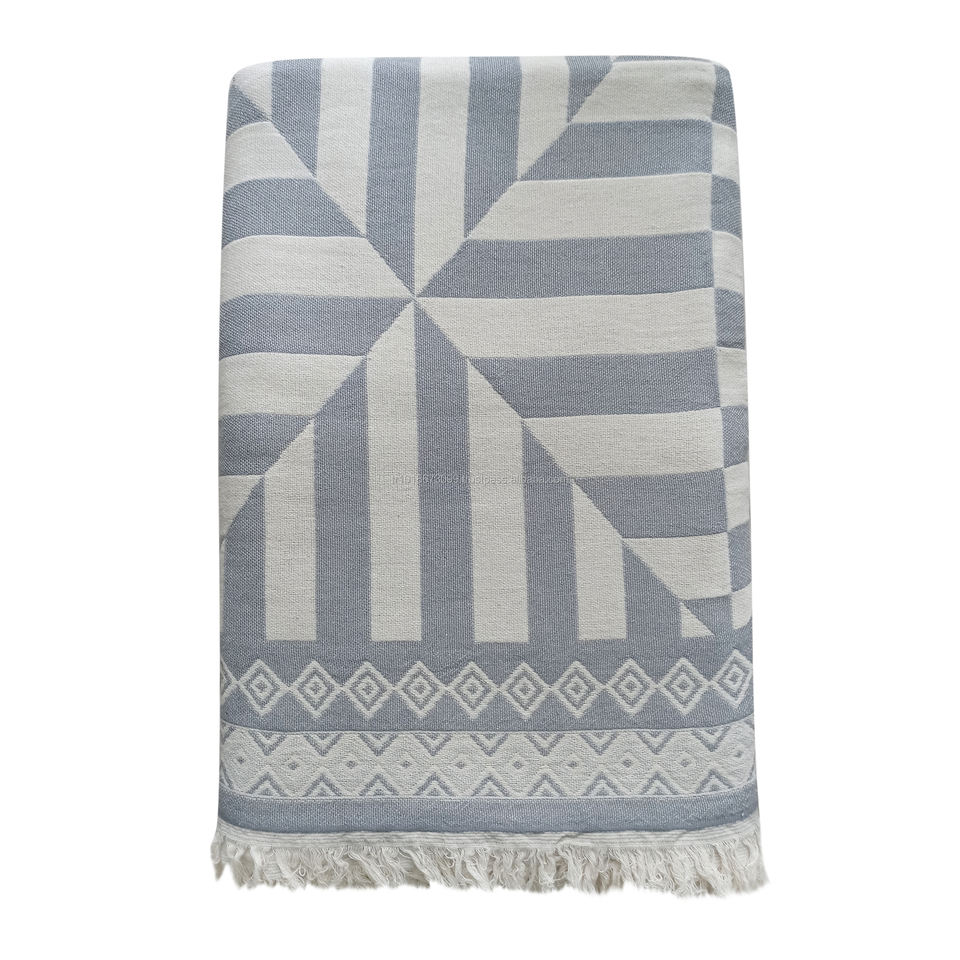 Geometric Cotton Blankets Grey Throw 200x240 cm 78x95 Inches Heavy and Luxury Bed Spread Sofa Cover Jacquard Throw Blanket