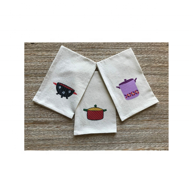 Geometric Cute Stew Pots Durable New 100% Cotton Embroidered 18x28 Inch 180 GSM Stylish Wholesale Hanging Loop Kitchen Towels