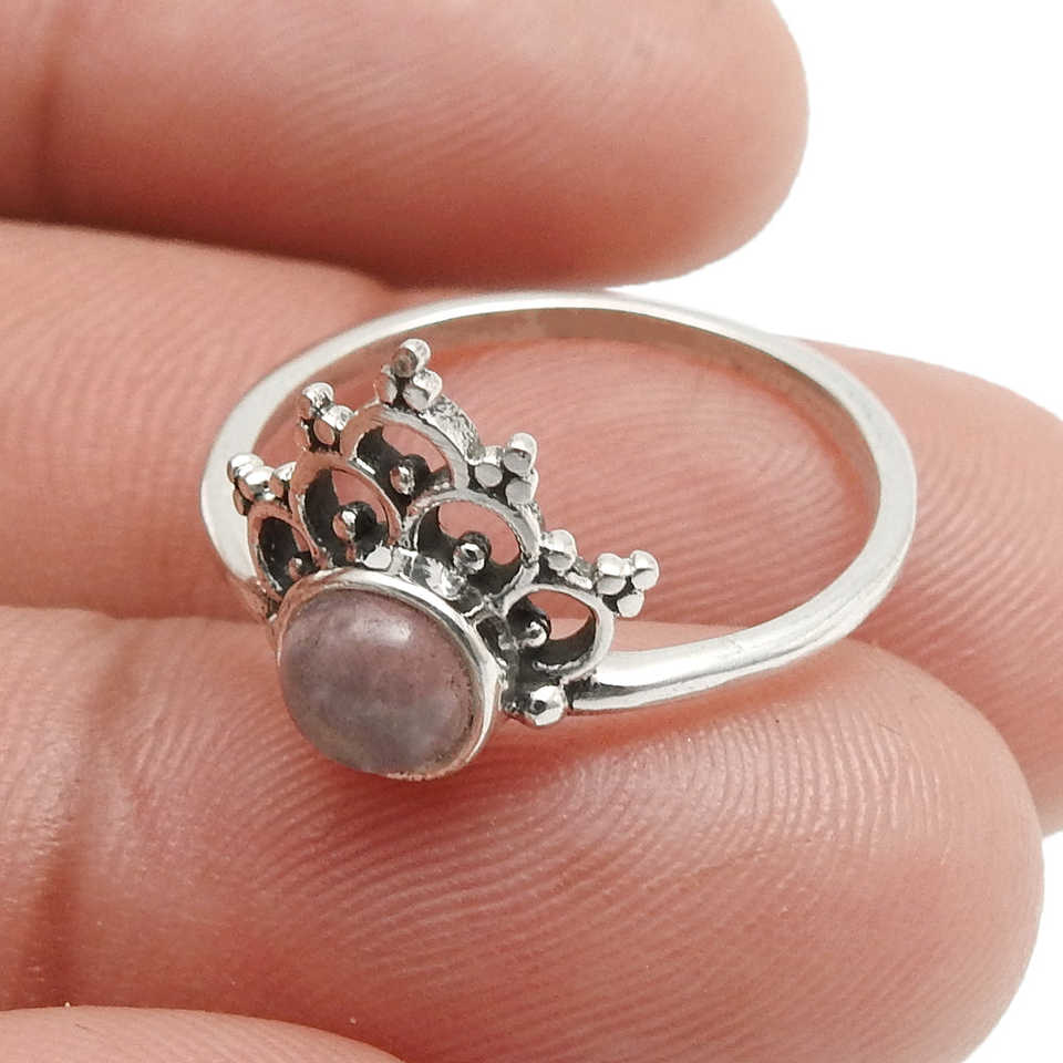 Geometric Design Luxury Engagement Rings For Her Crown Shape Rose Quartz Gemstone Ring In 925 Sterling Silver Wholesale Jewelry