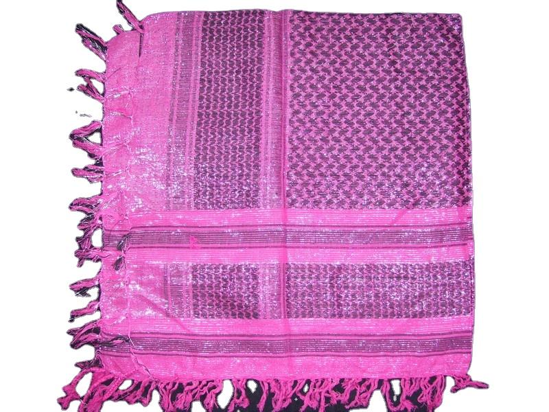 Geometric Design Square Pattern Arab Lurex Summer Scarf Women's Arafat Cotton Shemagh Keffiyeh Palestine Jacquard
