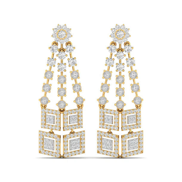 Geometric Diamond Dangle Earring's 14k 18k Gold Available In Rose Yellow White Solid Gold Best Women's Anniversary Gift - DS0663