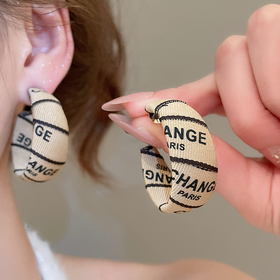 Geometric Fashion Jewelry Women Silver Needle Fabric C-shaped Letter Printed Stud Hoop Earrings