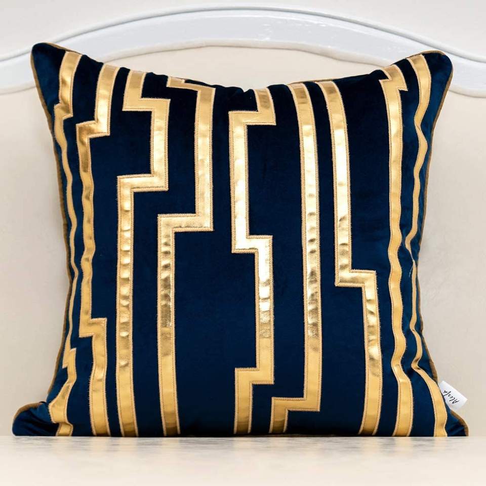 Geometric Gold Leather Striped Cushion Cases Luxury European Throw Pillow Covers Decorative Pillows for Couch Living Room Bed
