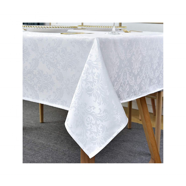 Geometric Inspired 100% Cotton Embroidered White Embossed Table Cloth 220 GSM 8Seater Reusable India OEM ODM Decor UPS Available