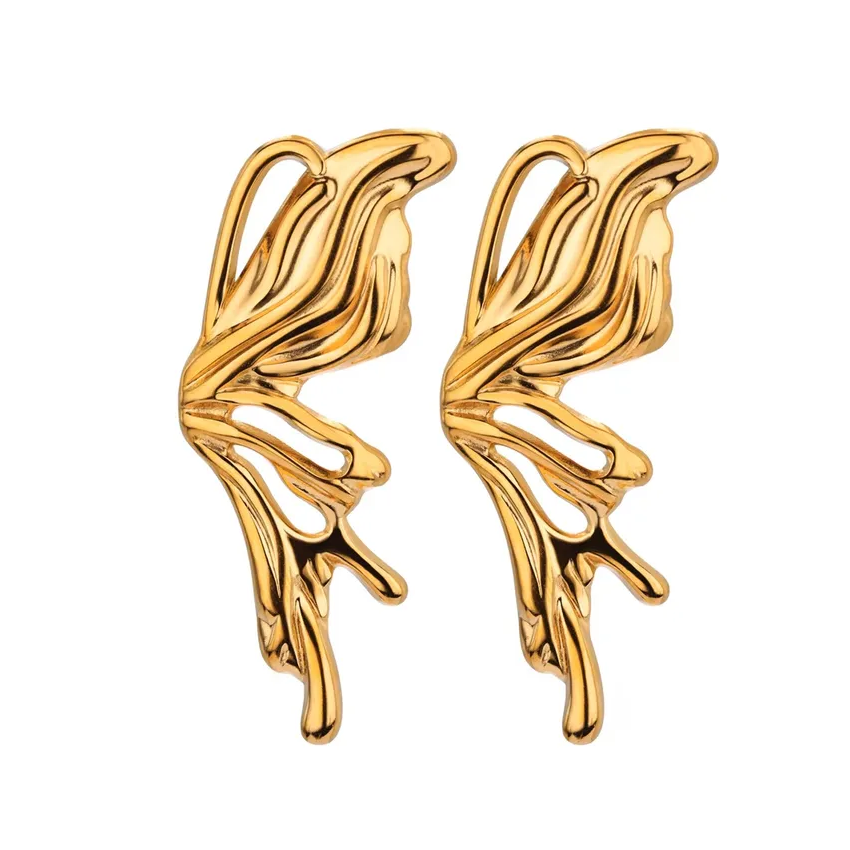 Geometric Irregular 18K Gold Plated Stainless Steel Ring Adjustable Women's Fashion Drop Earrings