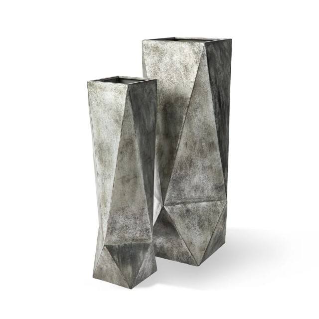 Geometric Metal Floor Vases Antique Silver Modern Decorative Vases Tall Metal Flower Vases for Home Decor Living