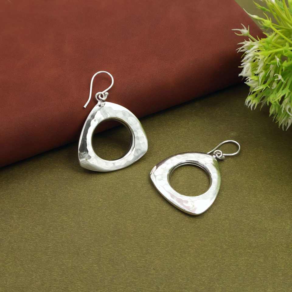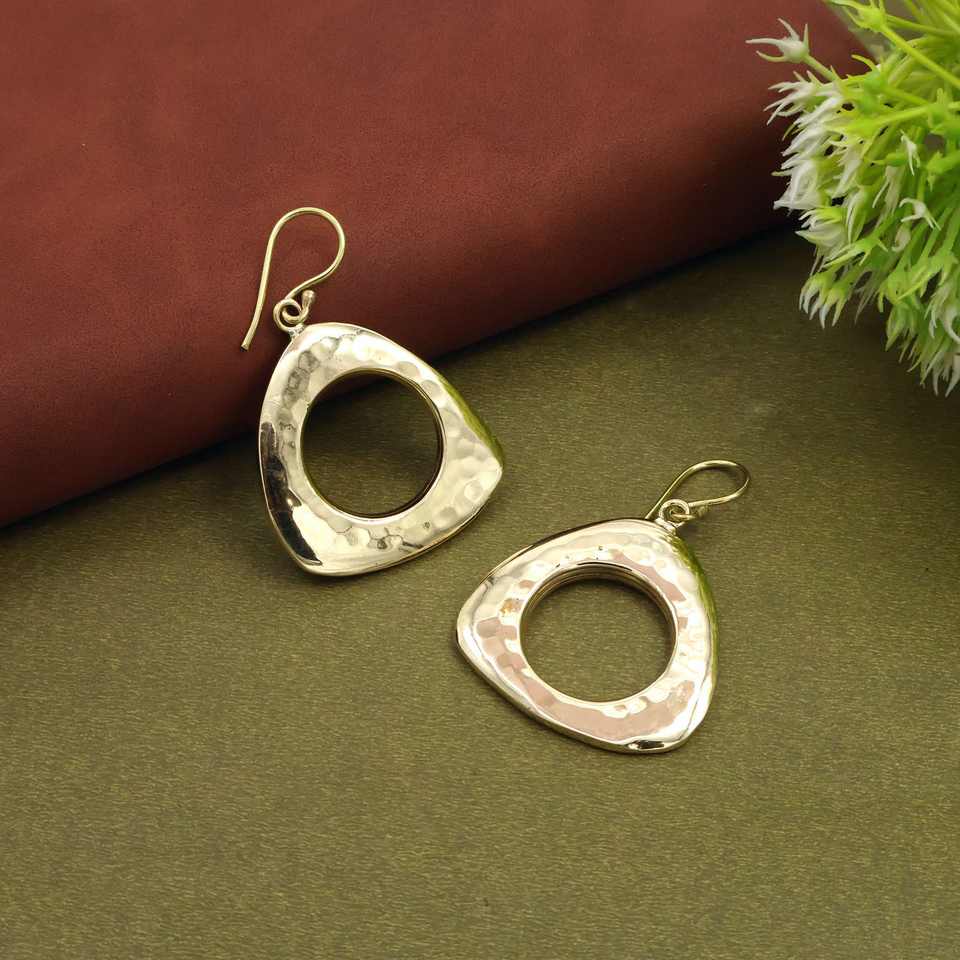 Geometric Open Circle Drop Earrings, Hammered Metal Statement Earrings, Modern Fashion Jewelry for Women