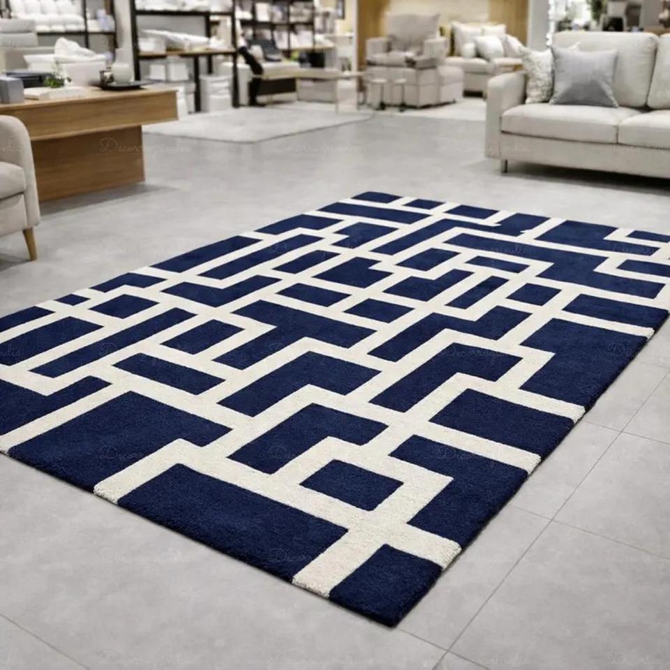 Geometric Pattern Area Rug Modern Blue Hand Tufted Living Room Carpet for Large Floor Rug Soft Luxury Bedroom Home Decor Carpet