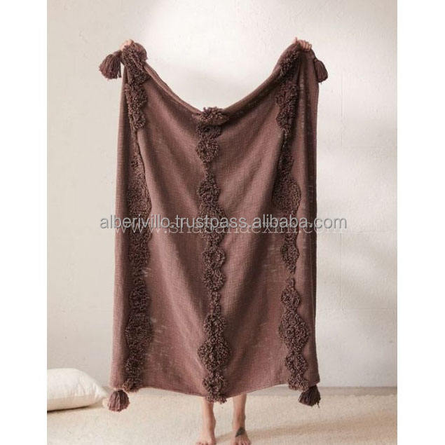 Geometric Pattern Style Tufted Boho Couch Throw Blanket Sustainable Lightweight Tufted Bohemian Throw for Sofa Bed Couch Decor