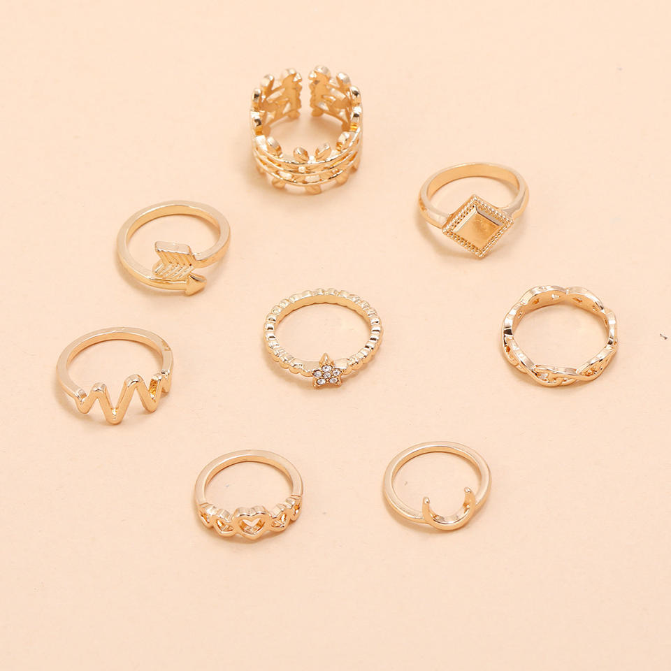 Geometric Rings Set 8Pcs 18K Gold Plated Alloy Bohemia Style For Women Daily Party Wear