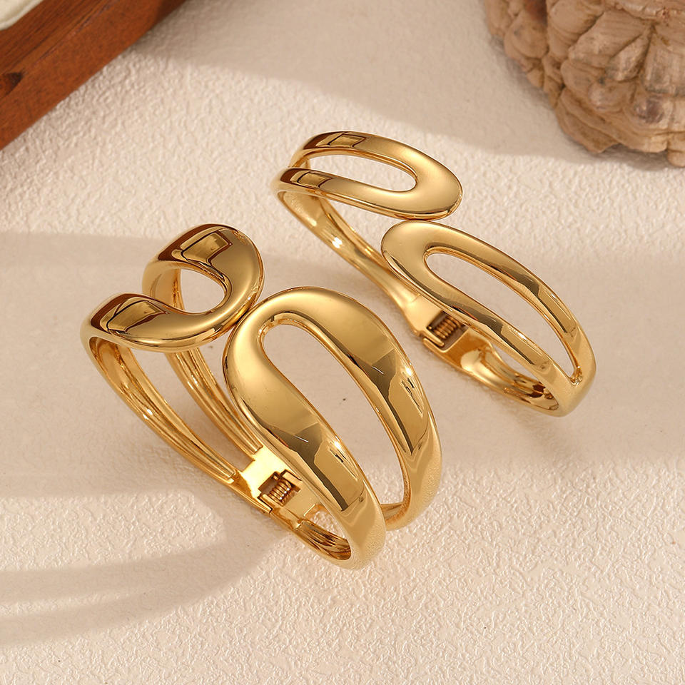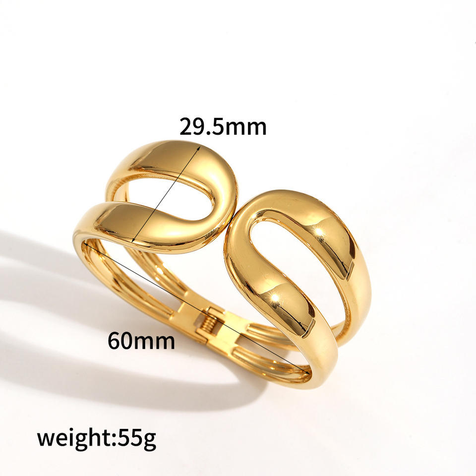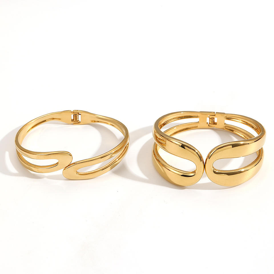 Geometric Stainless Steel Spring Open Bangle 18k Gold Plated Titanium Steel Bracelet For Women Wide Face Jewelry