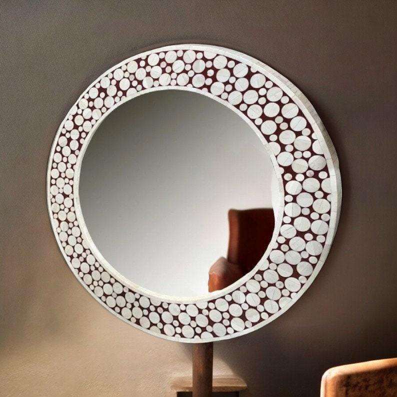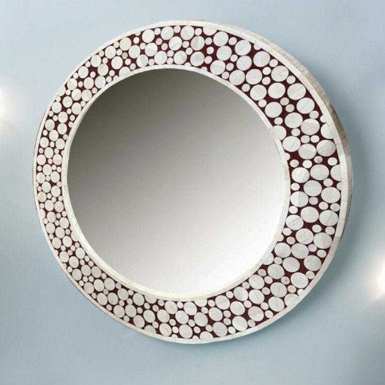 Geometric Style Black and White Bone Inlay Glass Mirror Frame with Handcrafted Mosaic Design for Modern Wedding Wall Decor