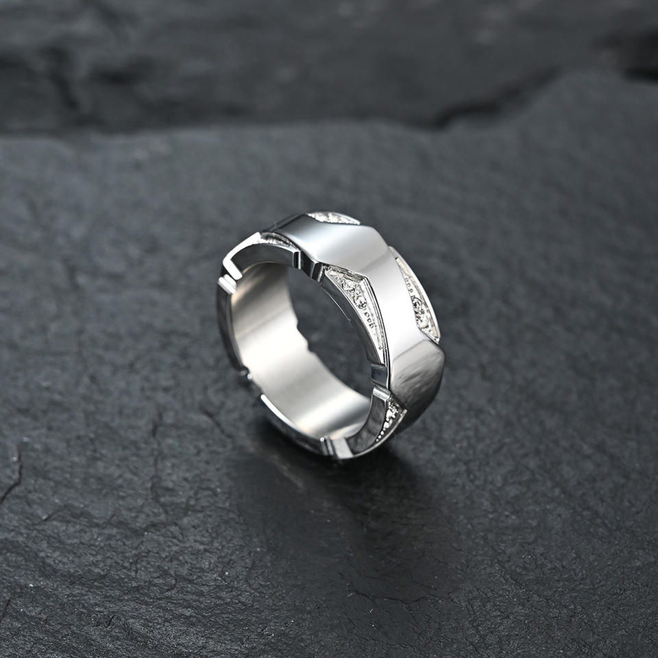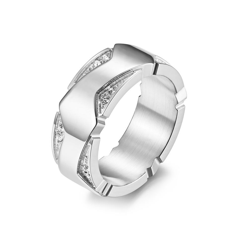 Geometric Titanium Steel Rings Gold Plated Diamond Encrusted For Couples Wedding Engagement Unisex Fine Jewelry