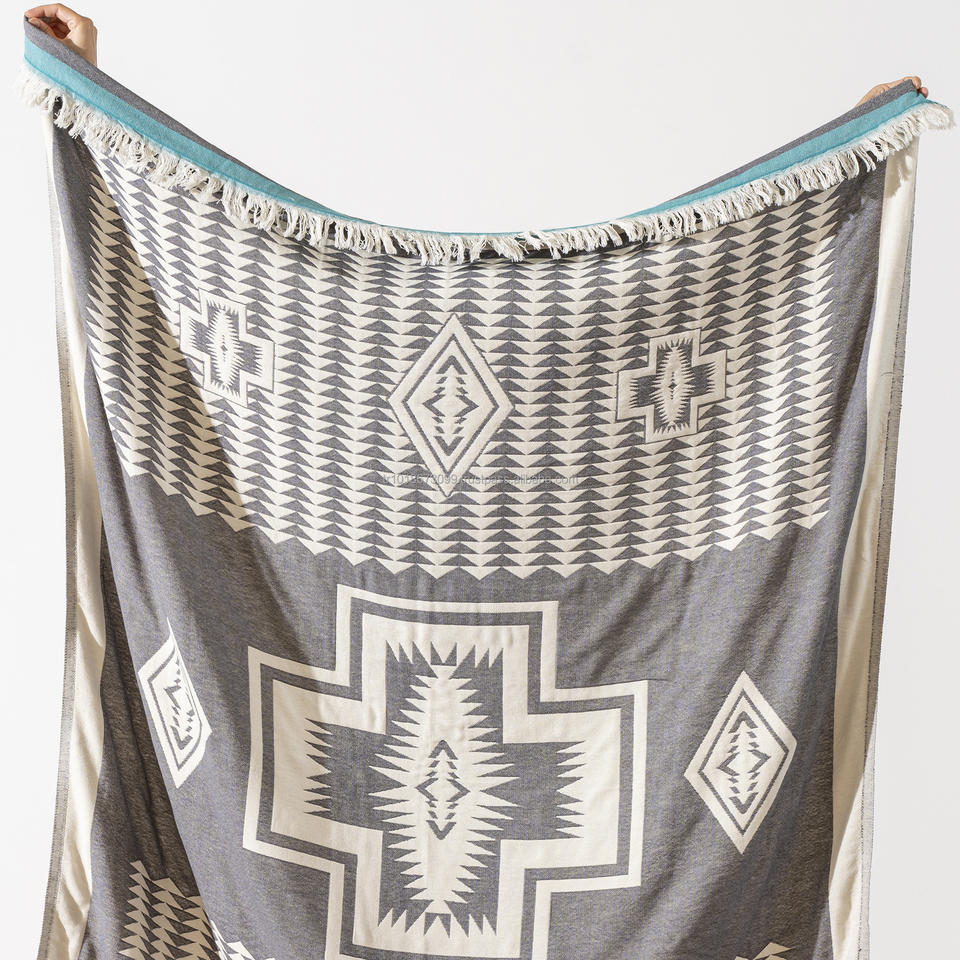 Geometric Turkish Throw Beach Blanket 100% Cotton Pestemal Hammam Black/Beige Color Sofa Covers Luxury