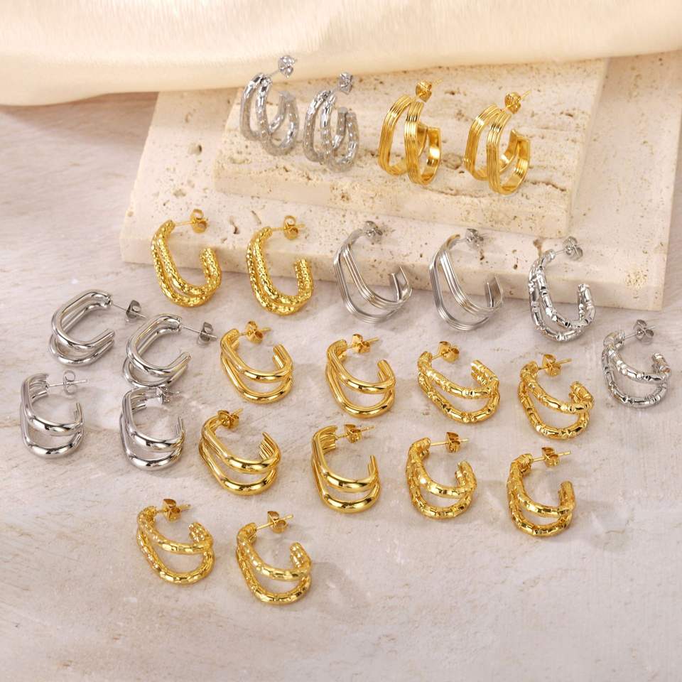 Geometric U-Shaped Splicing Earrings Dongguan Titanium Steel Ear Jewelry Ins High-End Versatile Ear Clips In Stock Wholesale Per
