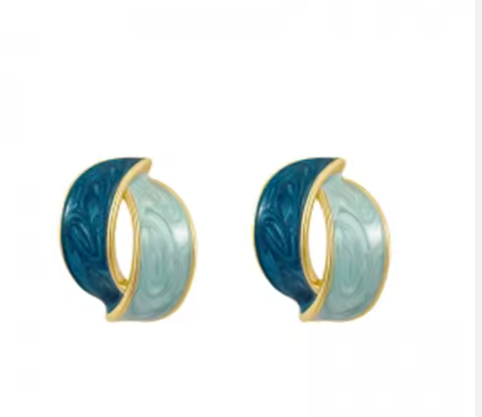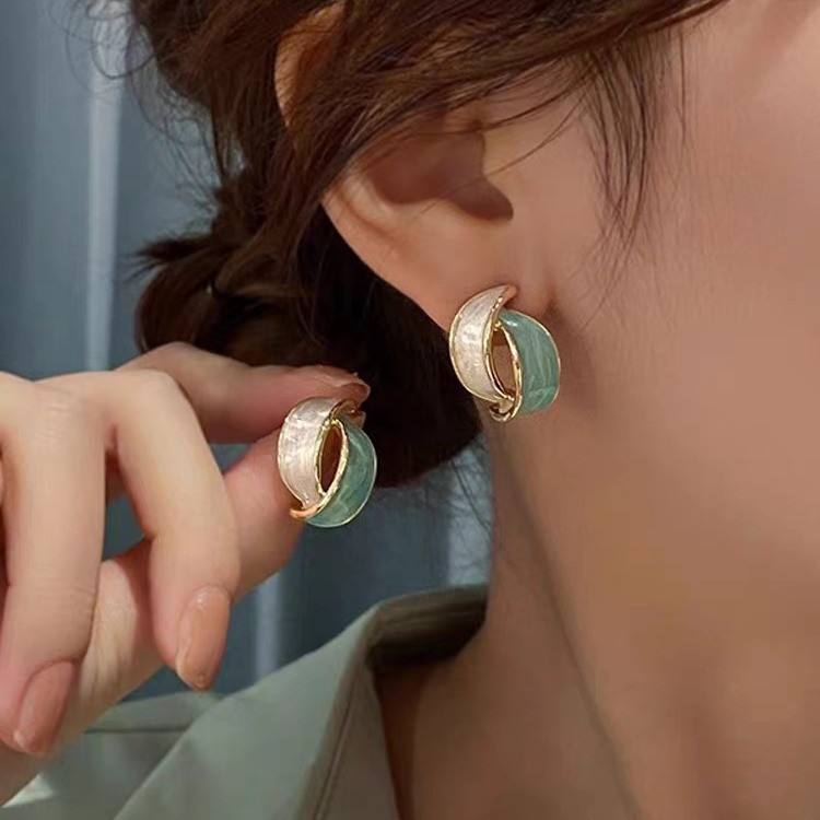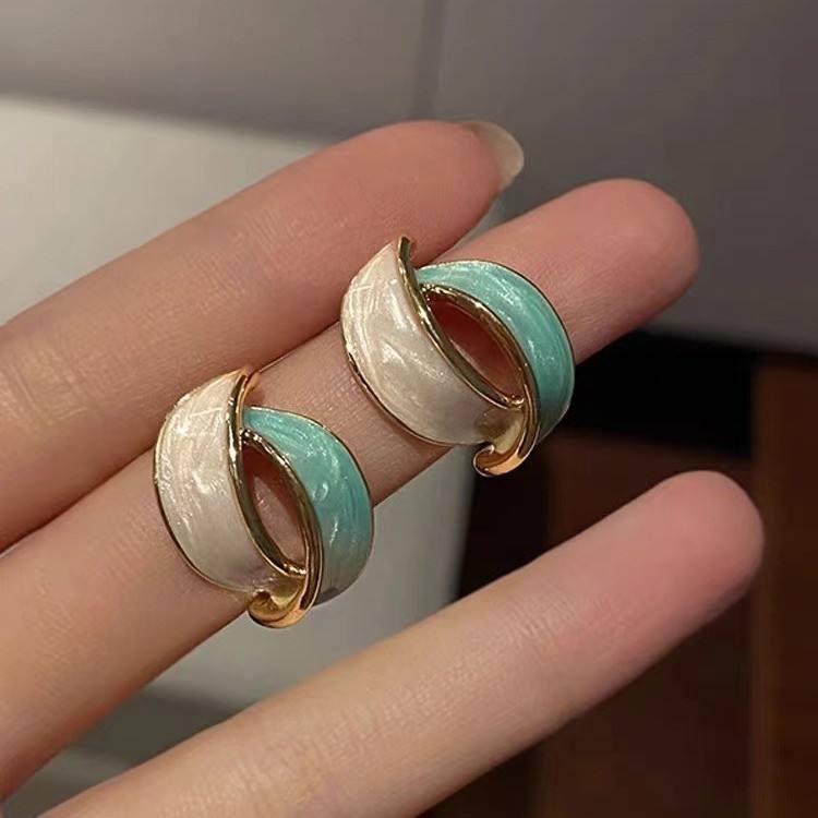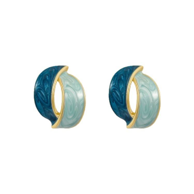 Geometric Wooden Earrings 925 Silver Needle French Literary Style Enamel Color Matching Geometric Stud Earrings